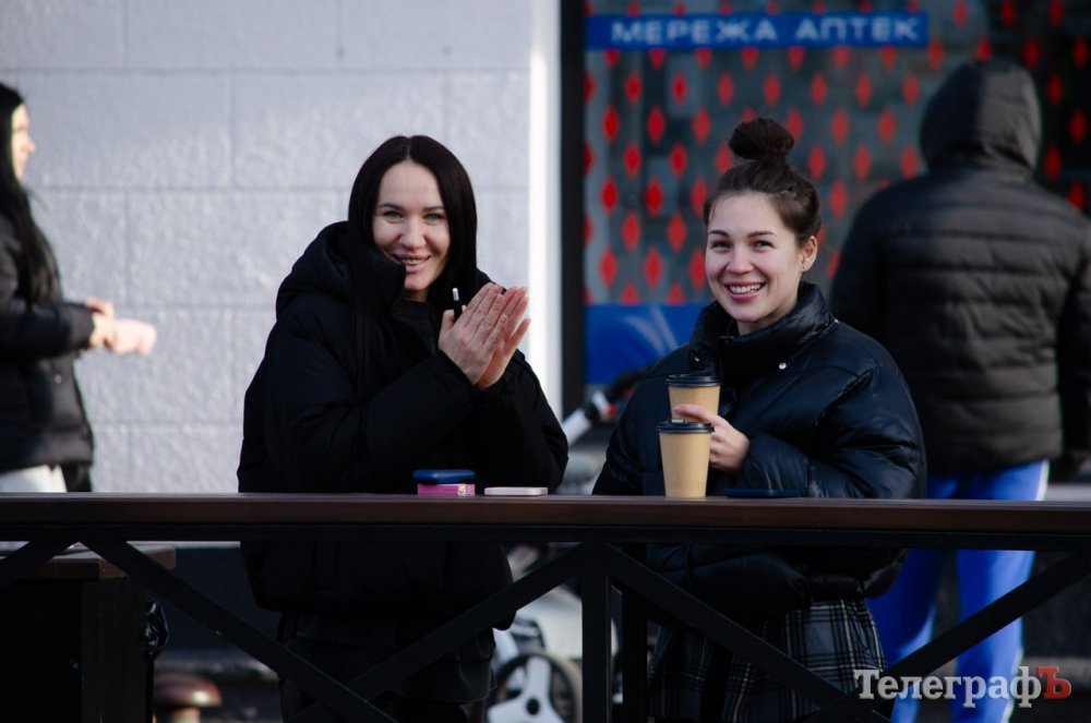 Багато кременчужан, не поспішаючи, гуляють зі своїми домашніми улюбленцями та насолоджуються розмовами за гарячим напоєм.
