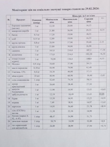 Згідно з моніторингом цін від Держпродспоживслужби станом на 29 лютого подорожчали: