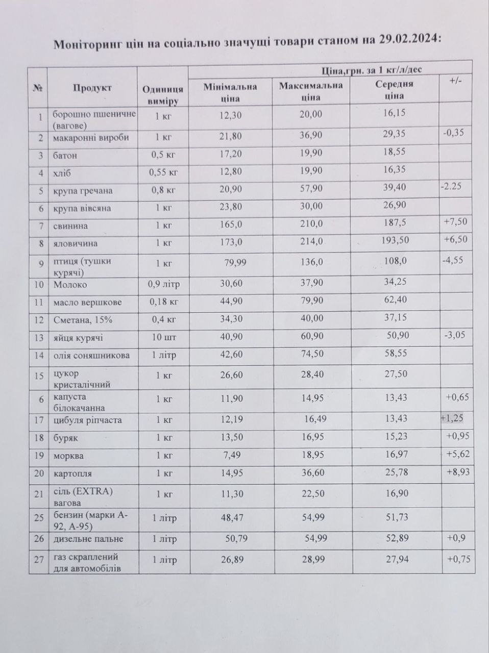Кременчуцьке районне управління Держпродспоживслужби провело моніторинг цін на соціально значущі товари у торговельних закладах району за останній тиждень лютого. З цією інформацією наше видання ознайомила Кременчуцька районна військова адміністрація.