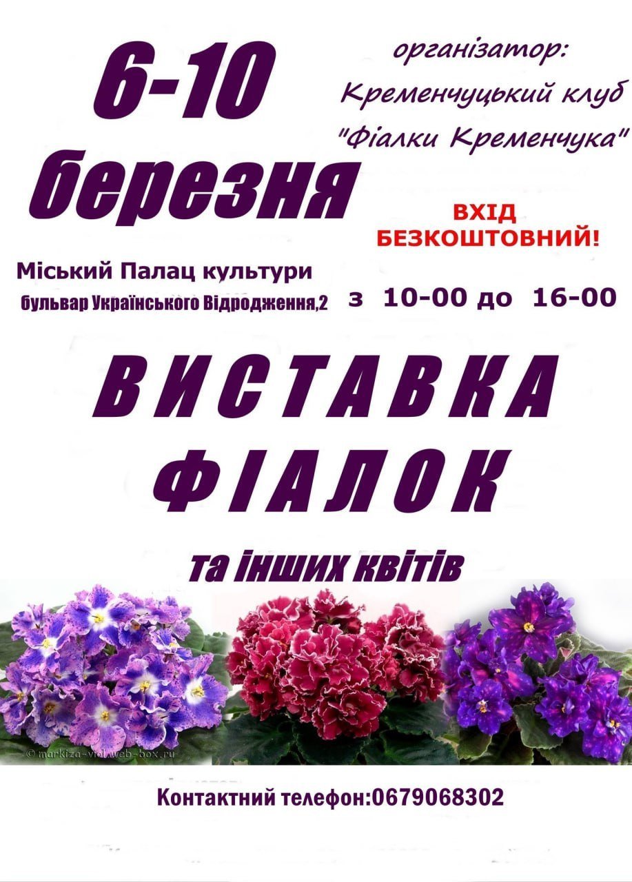 У Кременчуцькому Міському палаці культури відкривається виставка фіалок та інших квітів.