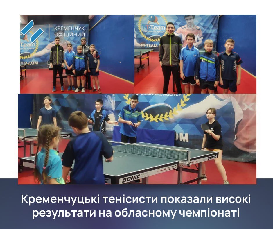 Кременчужани показали високі результати на Чемпіонаті області з настільного тенісу серед юнаків та дівчат 2011 року народження та молодше. Про це повідомили у пресслужбі Кременчуцької міської ради.
