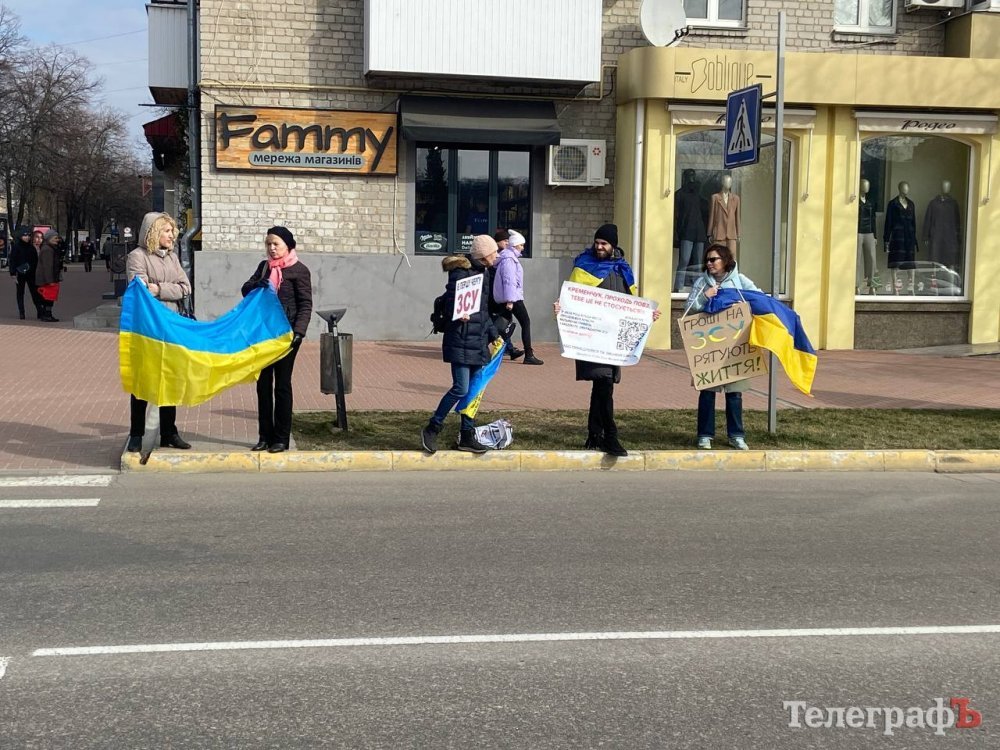 Біля Кременчуцької міської ради містяни стояли з плакатами «Підтримка армії в пріоритеті», «Гроші на ЗСУ рятують життя!», «Наші гроші – захисникам Батьківщини!», «Проти некритичних витрат» та «Підтримуєш – сигналь».