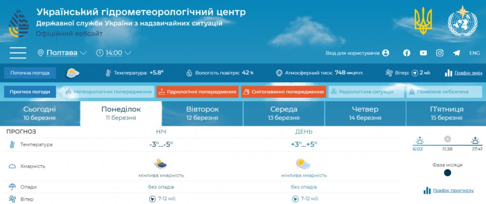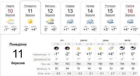 У понеділок, 11 березня, у Кременчуці у Кременчуці буде ясно недовго, вже вдень небо затягнеться хмарами, які протримаються до пізнього вечора.