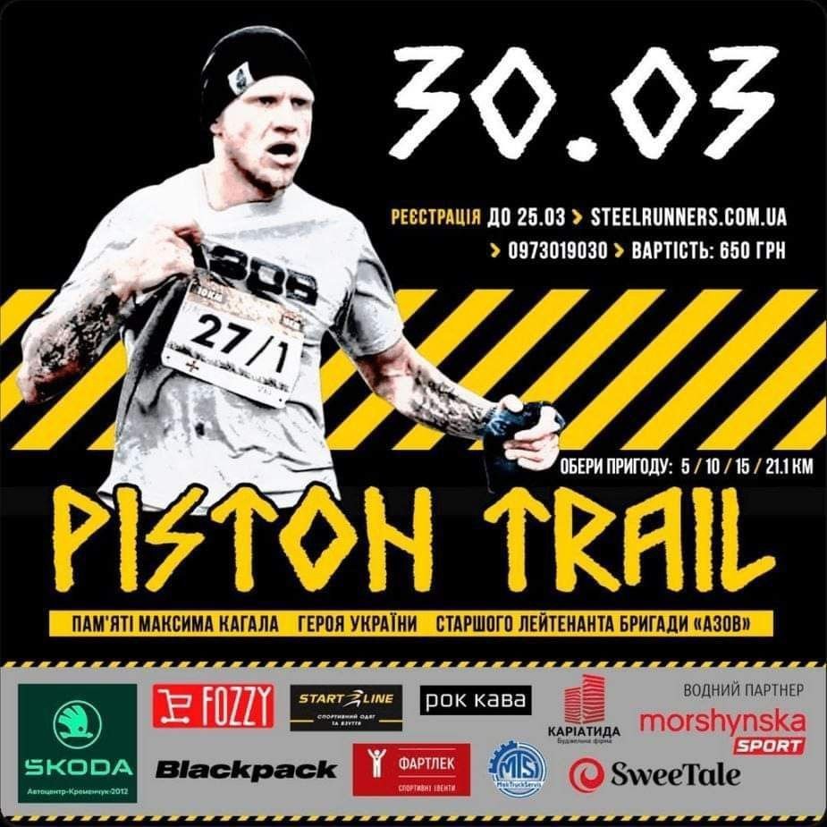 30 березня в Кременчуці пройде «PISTON TRAIL» — напівмарафон пам?яті Максима «Пістона» Кагала, Героя України, старшого лейтенанта бригади «Азов», який загинув 25 березня 2022 року при обороні Маріуполя.