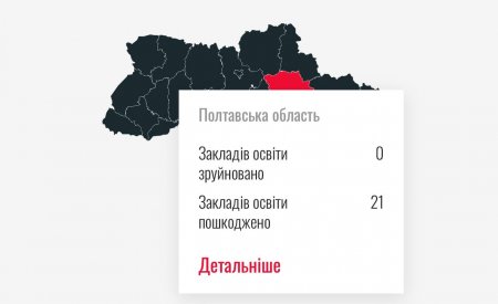 За понад два роки повномасштабної війни в Україні внаслідок ракетних обстрілів на Полтавщині постраждав 21 заклад освіти. Такі дані наводять у Міністерстві освіти України.