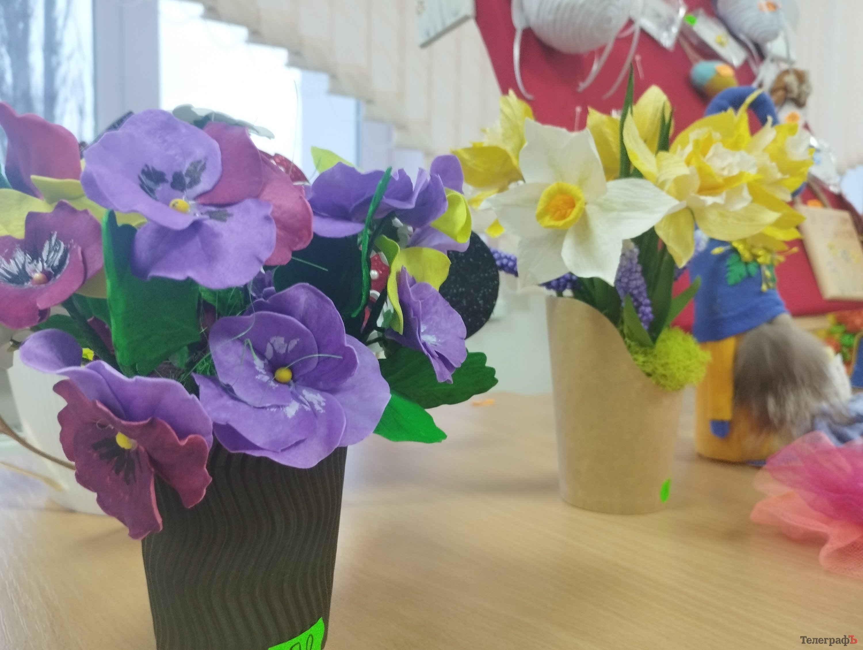 — У нашому закладі проходить благодійний захід, який присвячений початку весни. Звичайно жодне свято зараз не може проходити без благодійності, адже у війни немає свят, але хочеться, щоб у людей був хороший настрій і був привід зробити добру справу. Тому ми вирішили об’єднати свято весни разом з благодійним заходом, — розповіла директор БДЮТ Тетяна Кравченко. — Ми звернулися до батьків та запропонували також долучитися, адже у нас талановиті не лише діти та працівники, а ще дуже талановиті батьки, які надали поробки: в’язані іграшки, мило ручної роботи, поробки з гіпсу, що можна розмальовувати.