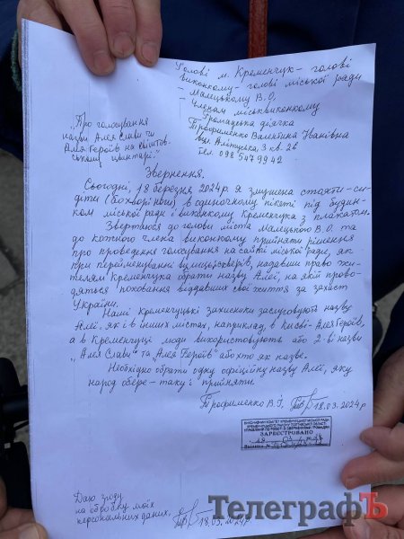 Своє звернення активістка Трофименко зареєстрували в Управлінні по роботі зі зверненнями громадян. Жінка чекає на офіційну відповідь від посадовців.