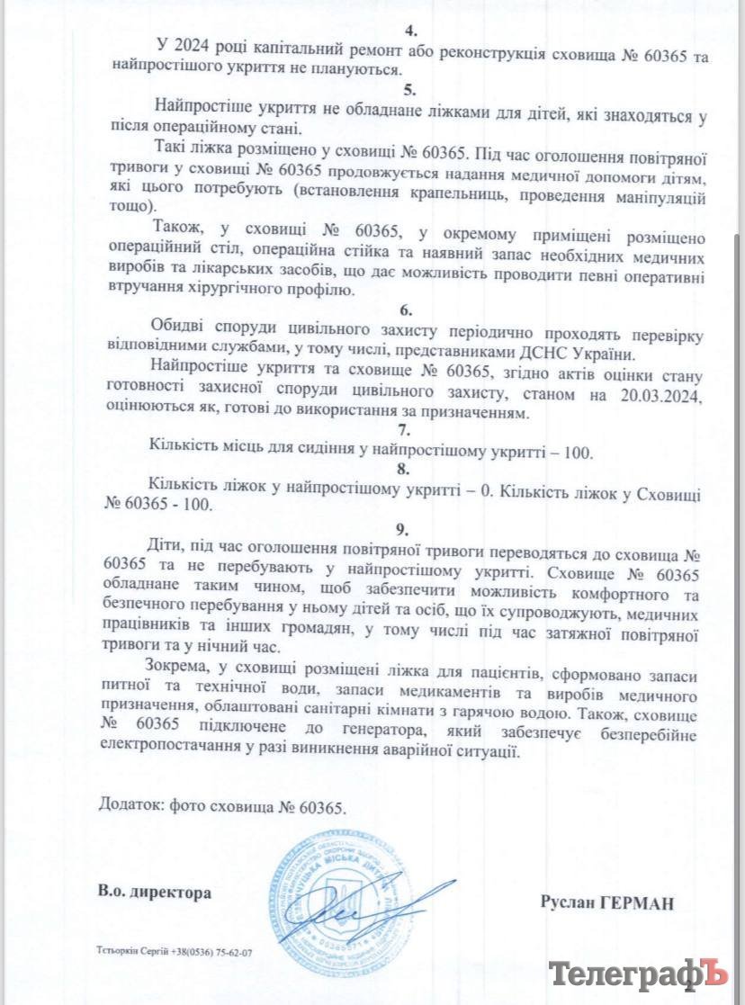 По коментарі редакція «Кременчуцького Телеграфа» звернулася до головного лікаря Кременчуцької міської дитячої лікарні. Руслан Герман телефоном ситуацію коментувати відмовився, втім порекомендував «писати запит на інформацію».