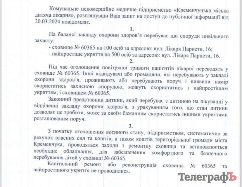 Нещодавно до редакції «Кременчуцького Телеграфа» звернулася кременчужанка, яка стверджувала, що укриття у медичному закладі знаходиться у неналежному стані.
