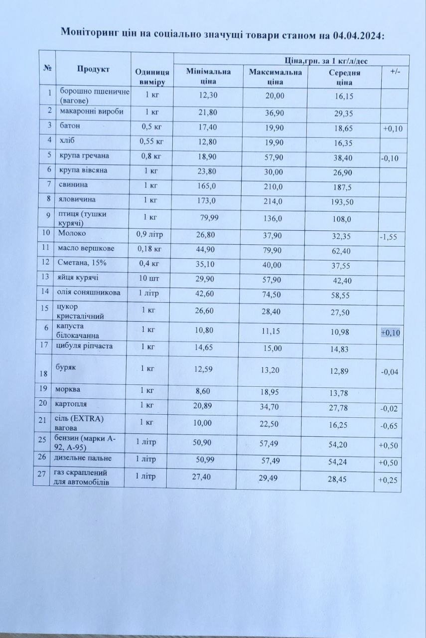 Згідно з моніторингом цін від Держпродспоживслужби станом на 4 квітня виросли у ціні: