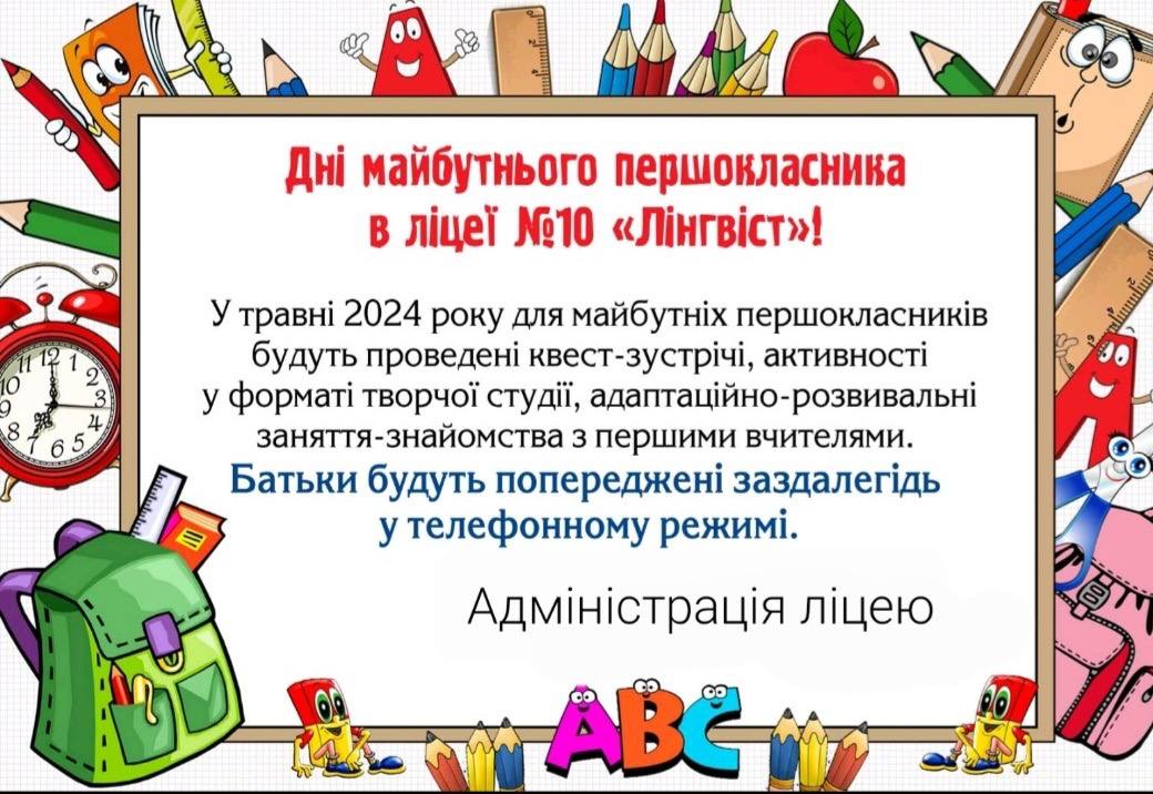 Кременчуцький ліцей №10 «Лінгвіст» продовжив набір дітей до 1 класу за програмою «Інтелект України». Про це «Кременчуцький Телеграф» дізнався від адміністрації закладу.