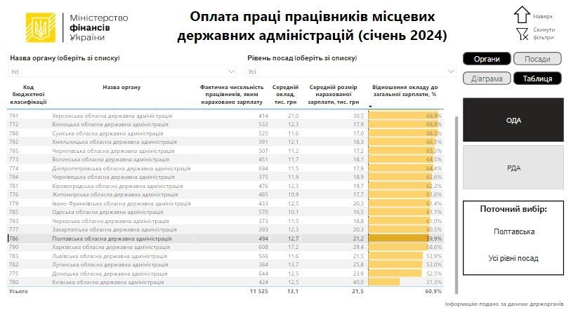 На дашборді, який розробило Міністерство фінансів можна переглянути заробітні плати та чисельність працівників у державних органах.