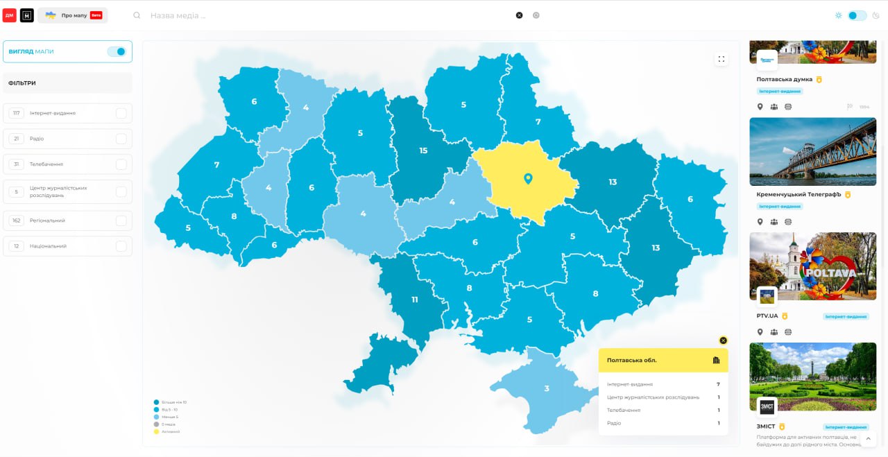 Загалом у спільний проєкт двох організацій потрапили 174 медіаресурсів з усіх регіонів України, оцінювання проходили 267 медійних ресурсів.