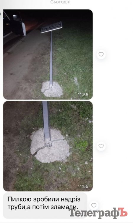 А вчора, 18 квітня, рідні побачили, що знак зруйнували на вулиці Вільної України. Вандали спочатку пилкою зробили надріз труби, а потім зламали покажчик. У той самий час знак на проспекті Полтавському стоїть.