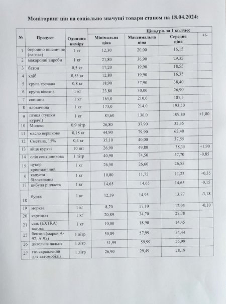 Згідно з моніторингом цін від Держпродспоживслужби станом на 18 квітня