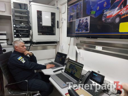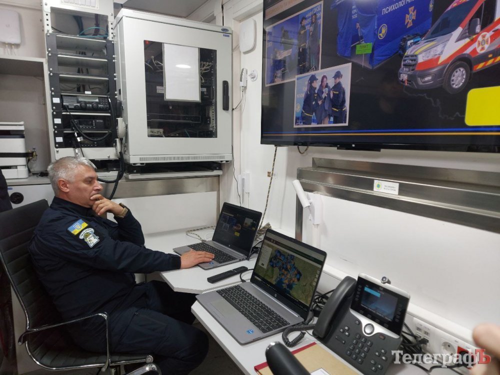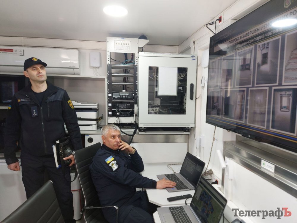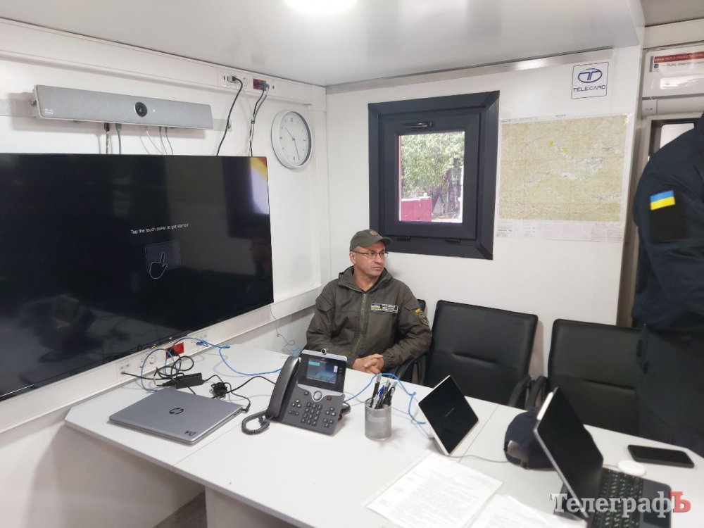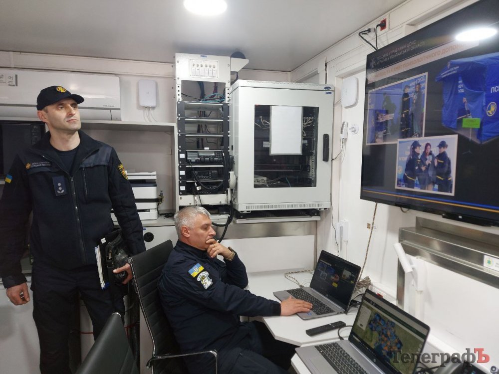 Присутнім показали, який вигляд всередині має той командний штаб, який знаходиться у Дніпрі. Вчора його демонстрували у Кременчуці. У ньому є інтернет Starlink, IP-телефонія, камера з високою роздільною здатністю, яка знаходиться на даху автомобіля (вона дозволяє моніторити ситуацію ззовні).