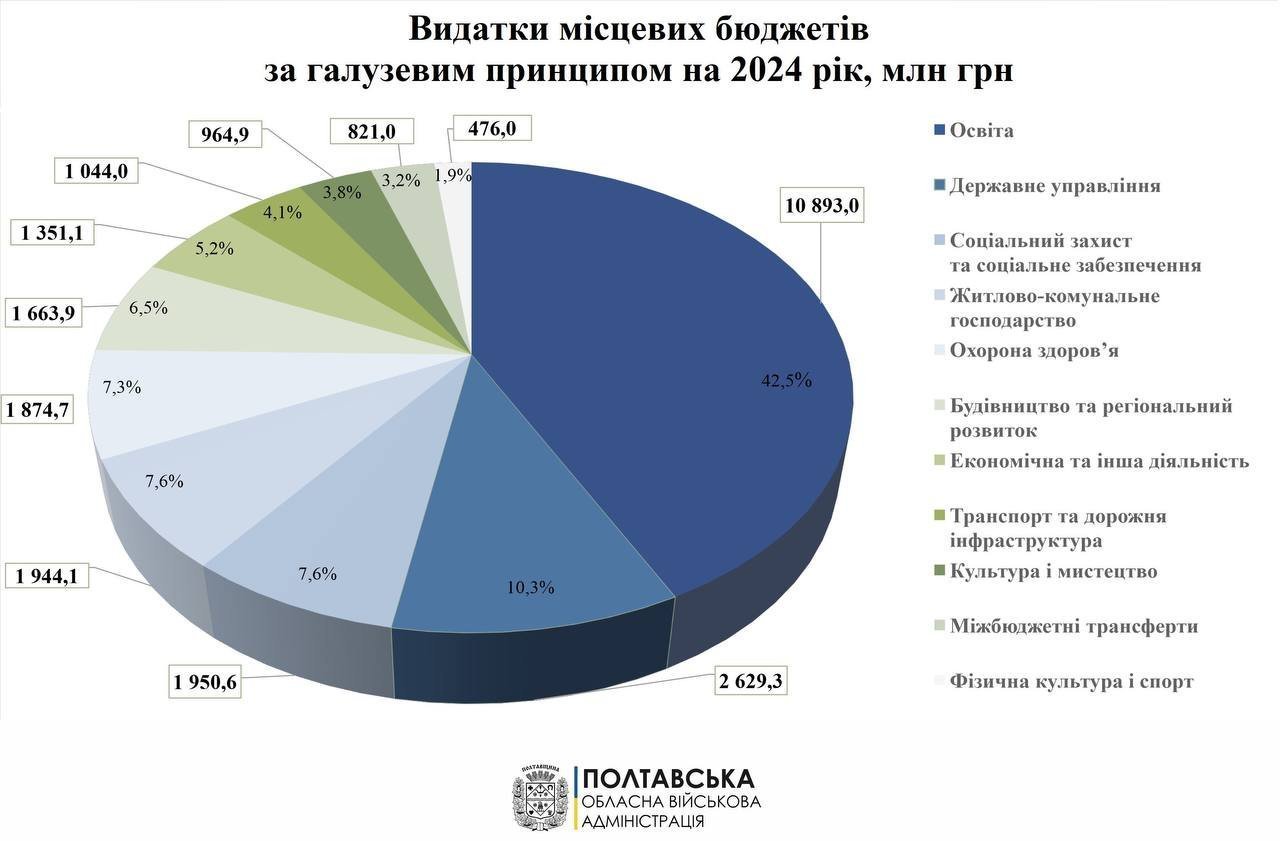 Видатки місцевих бюджетів Полтавщини на цей рік складає понад 25 млрд грн. Про це повідомляють на сайті Полтавської обласної військової адміністрації. Найбільше коштів скерують на освіту, охорону здоров’я, соціальний захист та соціальне забезпечення населення.