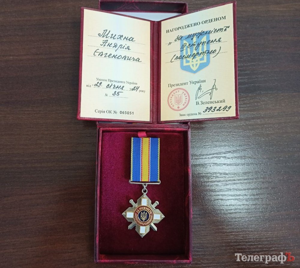 Сьогодні, 6 травня, у стінах Кременчуцької райвійськадміністрації рідним полеглого сержанта-прикордонника Андрія Михна із Кременчука передали державну нагороду — орден «За мужність» III ступеня. Разом із військовими державну нагороду вручив начальник Кременчуцької РВА Олег Лєднік.