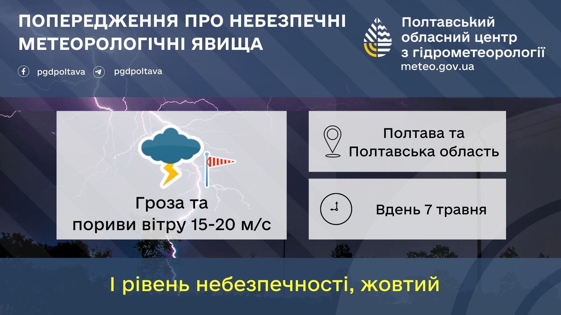 В обласному гідрометцентрі попереджають містян про небезпечні метеорологічні явища. У зв’язку з цим в області ввели І рівень небезпечності (жовтий).