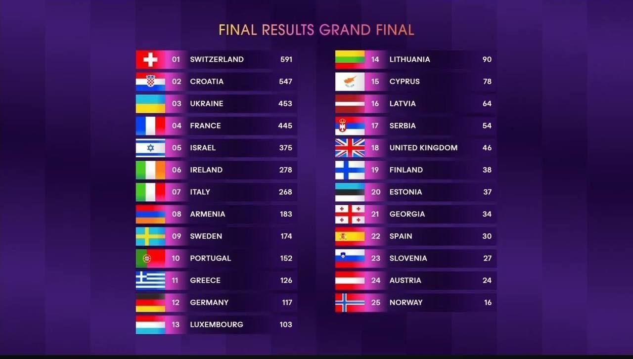 У шведському Мальме у ніч на 12 травня відбувся фінал 68-го конкурсу «Євробачення 2024». Переможцем став представник Швейцарії – співак Nemo з піснею «The Code». Він набрав 591 бал від глядачів та журі.