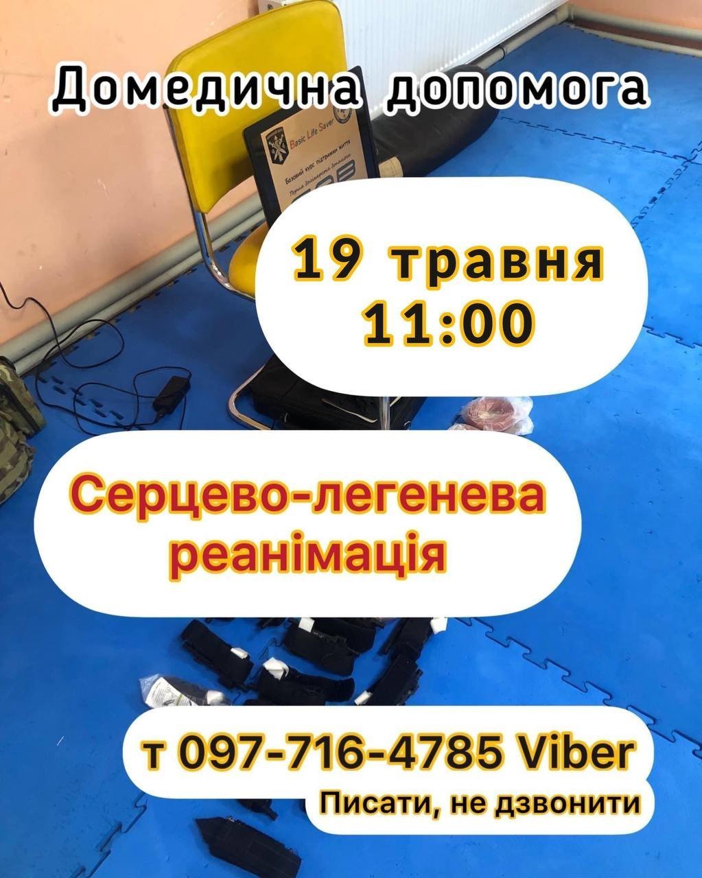 — Тренінг волонтерський! Кількість місць обмежена. Місце оголошу лише учасникам після запису на тренінг, але приміщення розташоване в центрі міста, знаходиться на цокольному поверсі та має кілька входів/виходів. Буде теоретична та практична частини. Обов’язково візьміть пару чистих шкарпеток — працюватимемо у спортивному дитячому залі. Для запису пишіть мені у Viber за номером (097) 716-47-85, вказуючи: прізвище, ім‘я та номер телефону, — додав Роман Бутрімов.