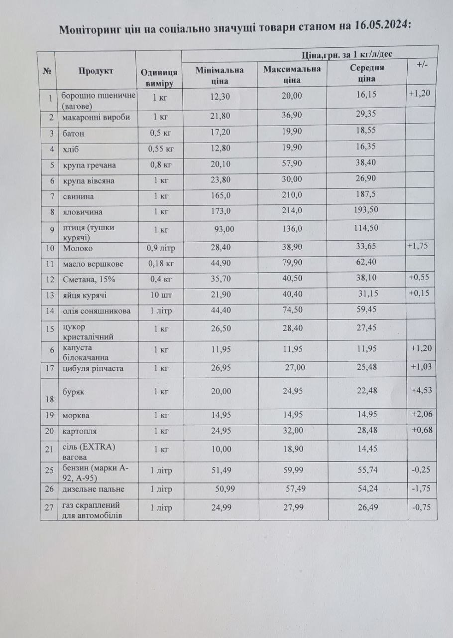 Кременчуцьке районне управління Держпродспоживслужби провело моніторинг цін на соціально значущі товари у торговельних закладах району станом на 16 травня. З цією інформацією наше видання ознайомила Кременчуцька районна військова адміністрація.