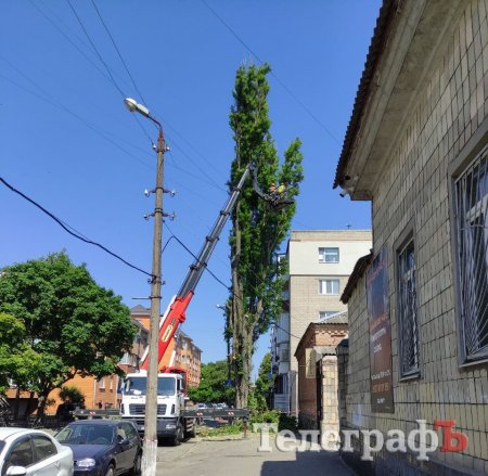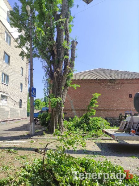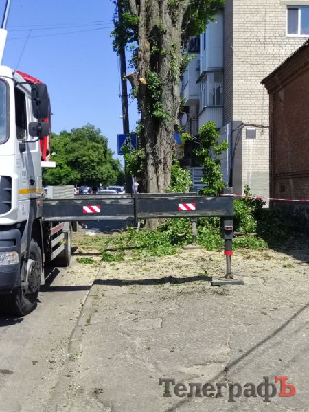 На місці фахівці обпилюють високе дерево. Окрім дороги, перегородили також і троуар поблизу Кременчуцько районного теритоірального центру комплектування та соціальної підтримки.