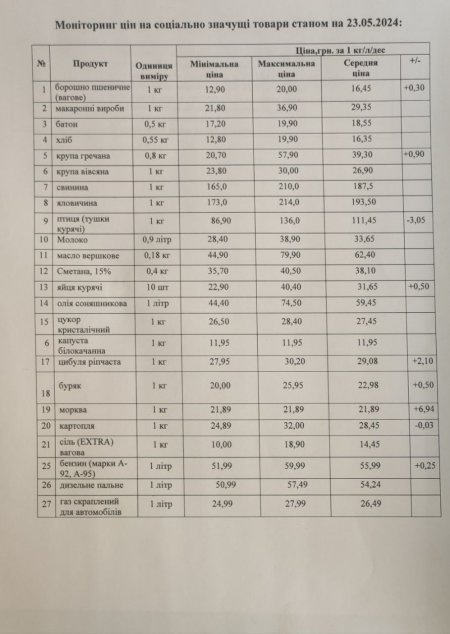 Кременчуцьке районне управління Держпродспоживслужби провело моніторинг цін на соціально значущі товари у торговельних закладах району станом на 23 травня. З цією інформацією наше видання ознайомила Кременчуцька районна військова адміністрація.
