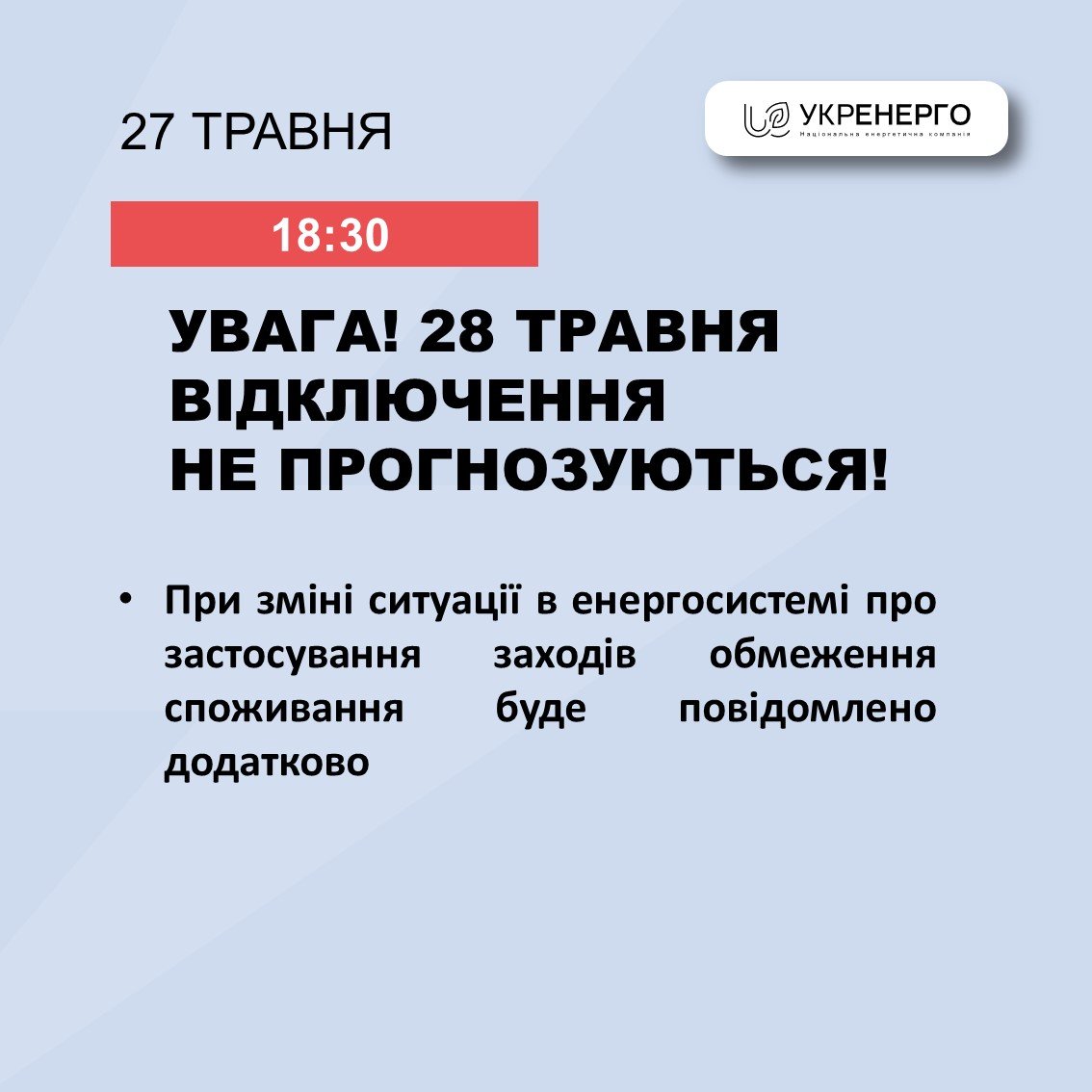 У вівторок, 27 травня, у Кременчуці, як і по всій Україні, світло відключати не планують. Графіки погодинного відключення електроенергії застосовувати не будуть – обмежень у споживанні не прогнозують. Про це повідомили у пресслужбі Національної енергетичної компанії «Укренерго».