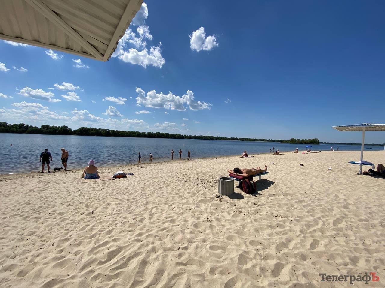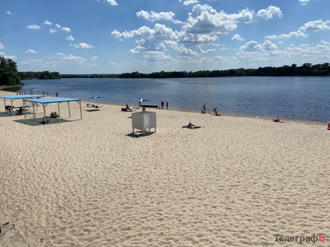 На пляжах відпочиває багато людей, передає кореспондентка «Кременчуцького Телеграфа» з намитого пляжу у Придніпровському парку. За їх безпекою слідкує рятувальник.