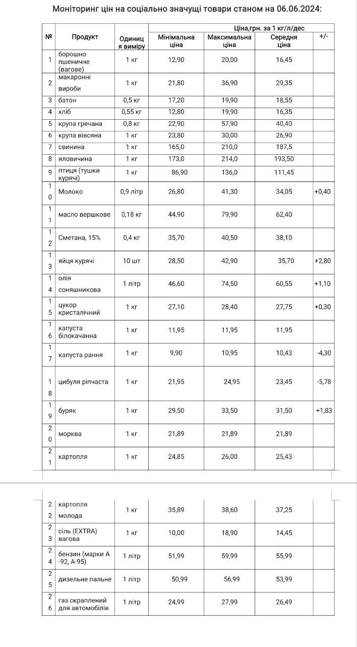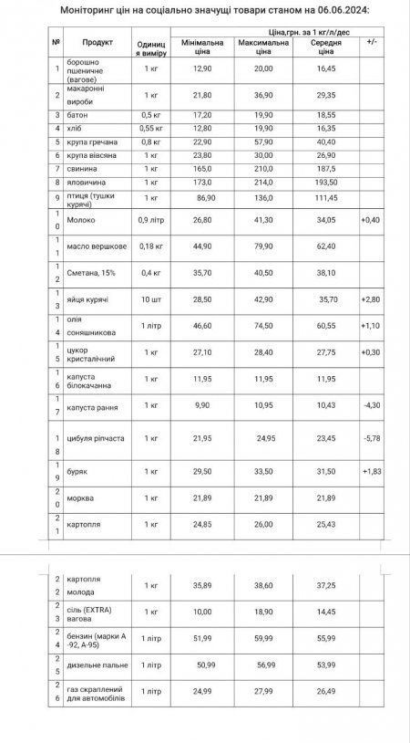 Кременчуцьке районне управління Держпродспоживслужби провело моніторинг цін на соціально значущі товари у торговельних закладах району станом на 6 червня. З цією інформацією наше видання ознайомила Кременчуцька районна військова адміністрація.