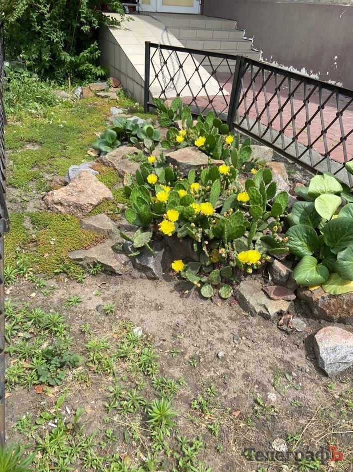 Неподалік центрального ринку Кременчука можна побачити невеличку клумбу, на якій яскраво-жовтими кольорами квітнуть кактуси опунція.