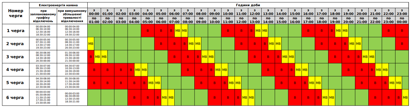 Перший графік — із 00.00 до 15.00 та із 23.00 до 24.00