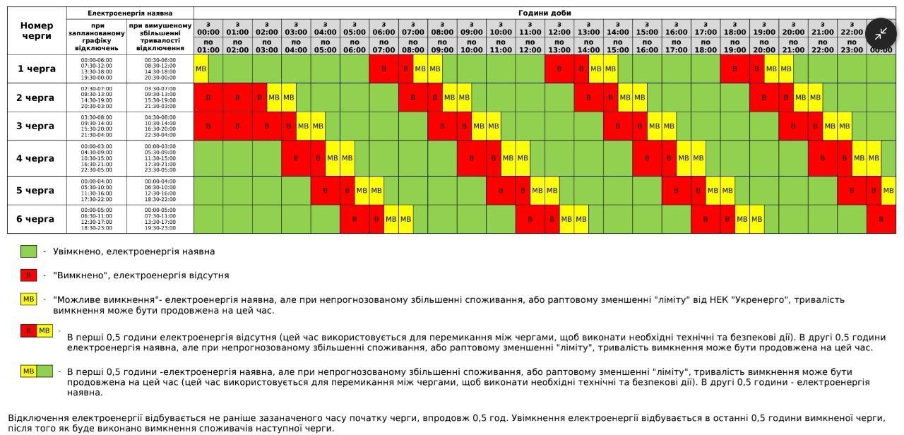 Графік з 00.00 до 15.00 можна подивитися ТУТ.