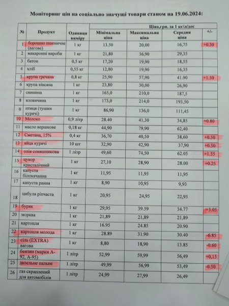 Кременчуцьке районне управління Держпродспоживслужби провело моніторинг цін на соціально значущі товари у торговельних закладах району станом на 19 червня. З цією інформацією наше видання ознайомила Кременчуцька районна військова адміністрація.