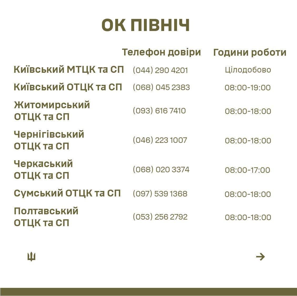 На сторінці Командування Сухопутних військ надані телефони «гарячих ліній» усіх обласних ТЦК та СП.