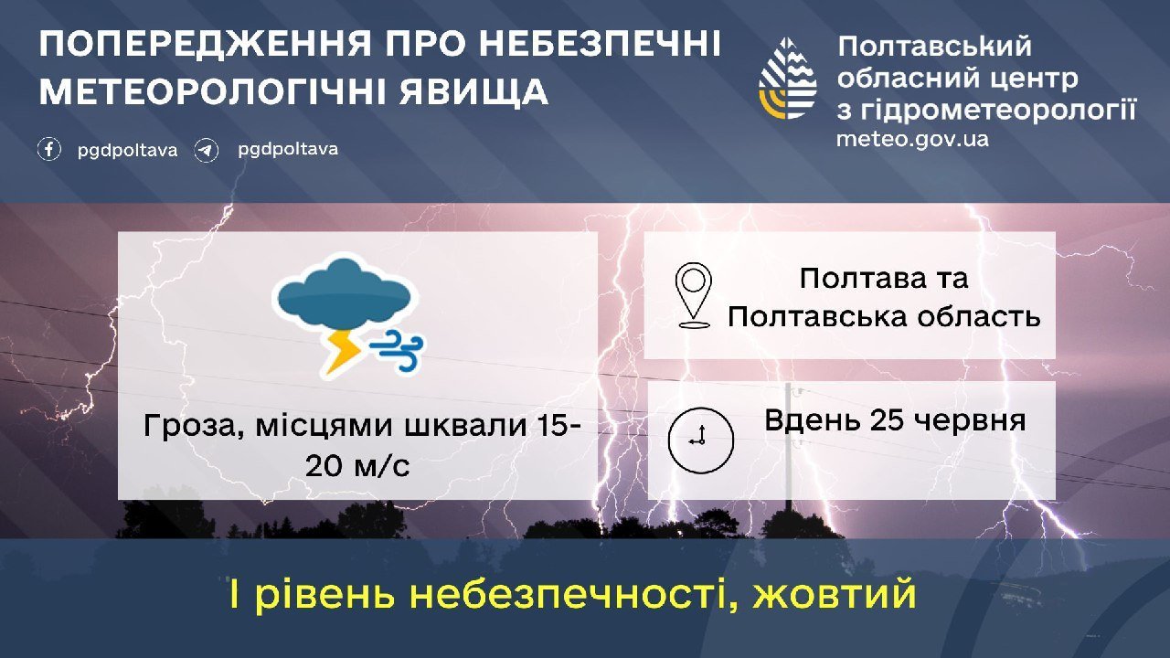Згідно з прогнозом, вдень 25 червня очікуються: