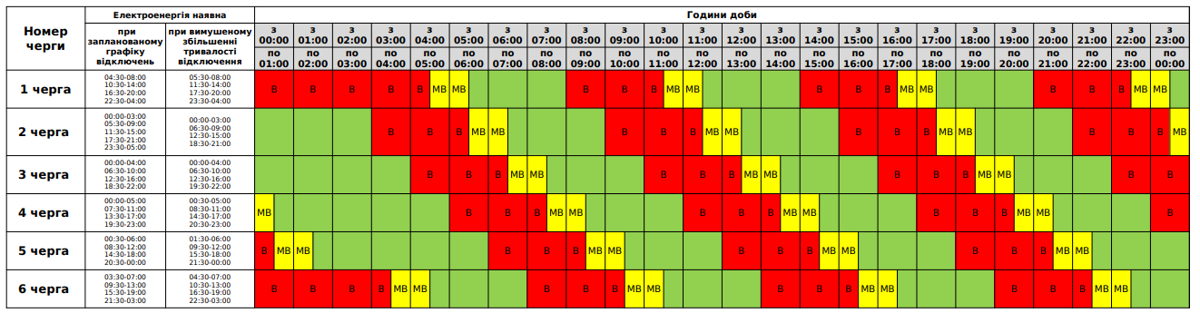 Перший графік: з 00.00 до 17.00 та із 23.00 до 00.00