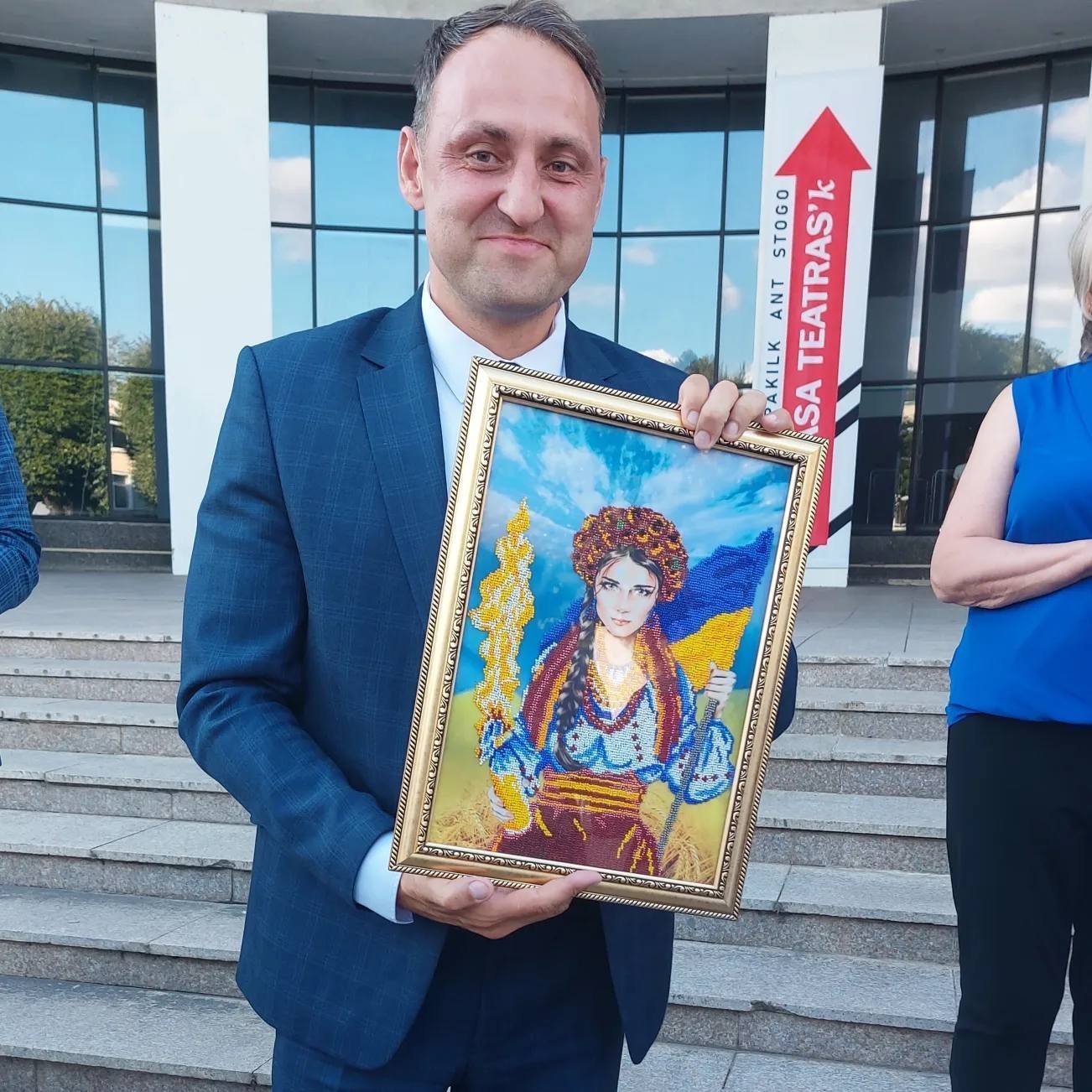 Своєю чергою Сабина Агаева подарувала меру міста Алітус картину, яку вишила власноруч. Меру дуже сподобався цей подарунок.