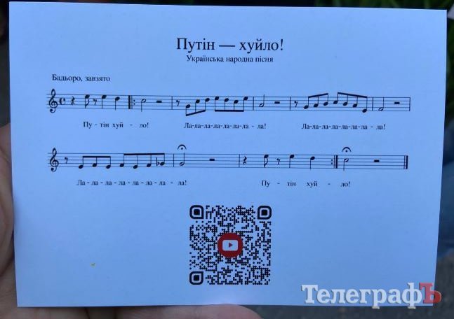 Сьогодні, 28 червня, Кременчуцька спілка філателістів презентувала листівку з серії «Українські народні пісні» під назвою «Путін — х**ло!»