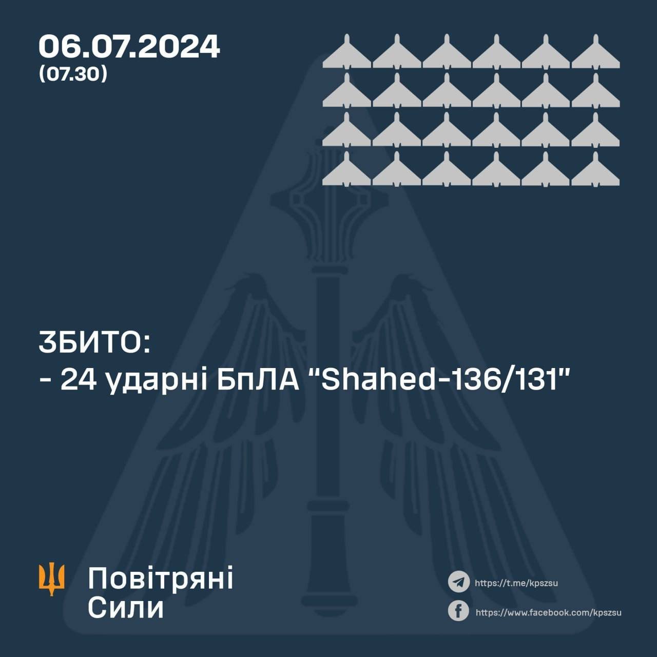 Армія РФ атакувала Україну 27-ма ударними БпЛА типу «Shahed-131/136» із Криму та Курської області. Захисникам українського неба вдалося збити 24 безпілотники.