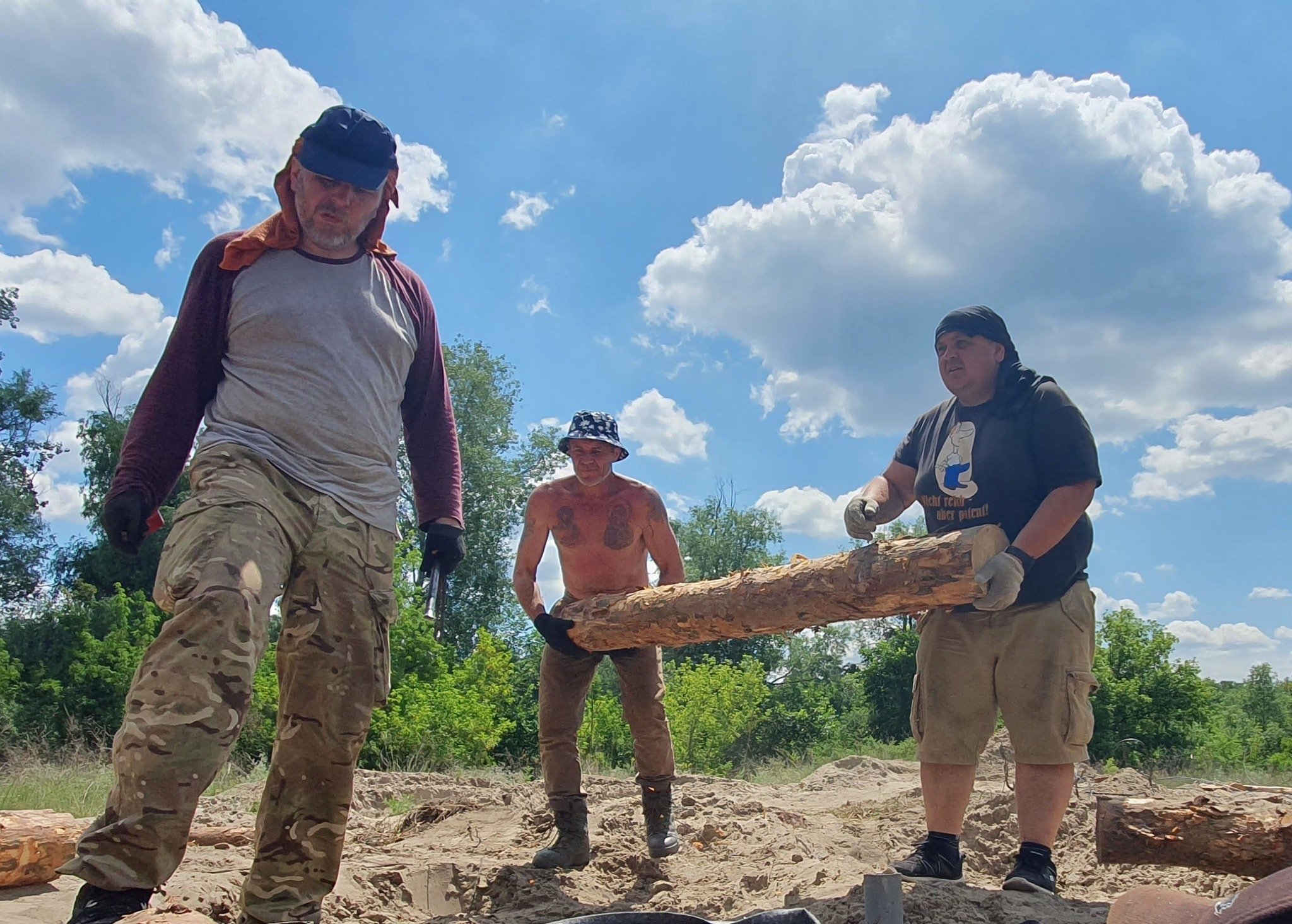 Сергій розповідає, жили там у колишній школі-інтернаті, мали двохразове харчування. Також їх щодня відвозили на місце роботи і назад. Задля комфорту та власних потреб чоловіки самотужки збудували собі літній душ.