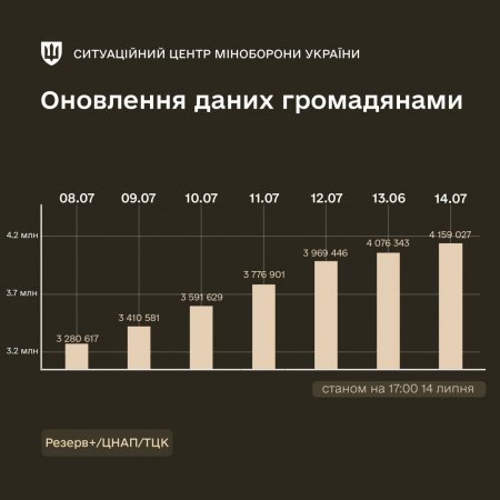 Загалом, станом на 14 липня 2024 року, свої військово-облікові дані оновили понад 4 млн 149 тисяч українців.