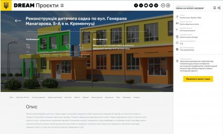 Відомо, що проєкт реконструкції основної будівлі та будівлі господарського блоку дитячого садка по вул. Лікаря Бончука 5-А (попередня назва вулиці — Генерала Манагарова) передбачає виконання робіт з перепланування існуючих приміщень, прибудову вхідних груп, пандусів, заміну вікон, дверей, влаштування підлог, покрівлі, укриття в підвалі, зовнішнє утеплення будівель, внутрішнє оздоблення приміщень, прокладання внутрішніх та зовнішніх мереж електро-, тепло-, водопостачання та водовідведення, облаштування вбиралень сантехнічними засобами, монтаж систем вентиляції, блискавкозахисту, пожежогасіння, пожежної та охоронної сигналізації, комунікаційних мереж. Придбання та монтаж технологічного обладнання господарського блоку та харчоблоку, облаштування основних приміщень меблями та інвентарем. Благоустрій території, встановлення павільйонів, дитячих та спортивних майданчиків, малих архітектурних форм.