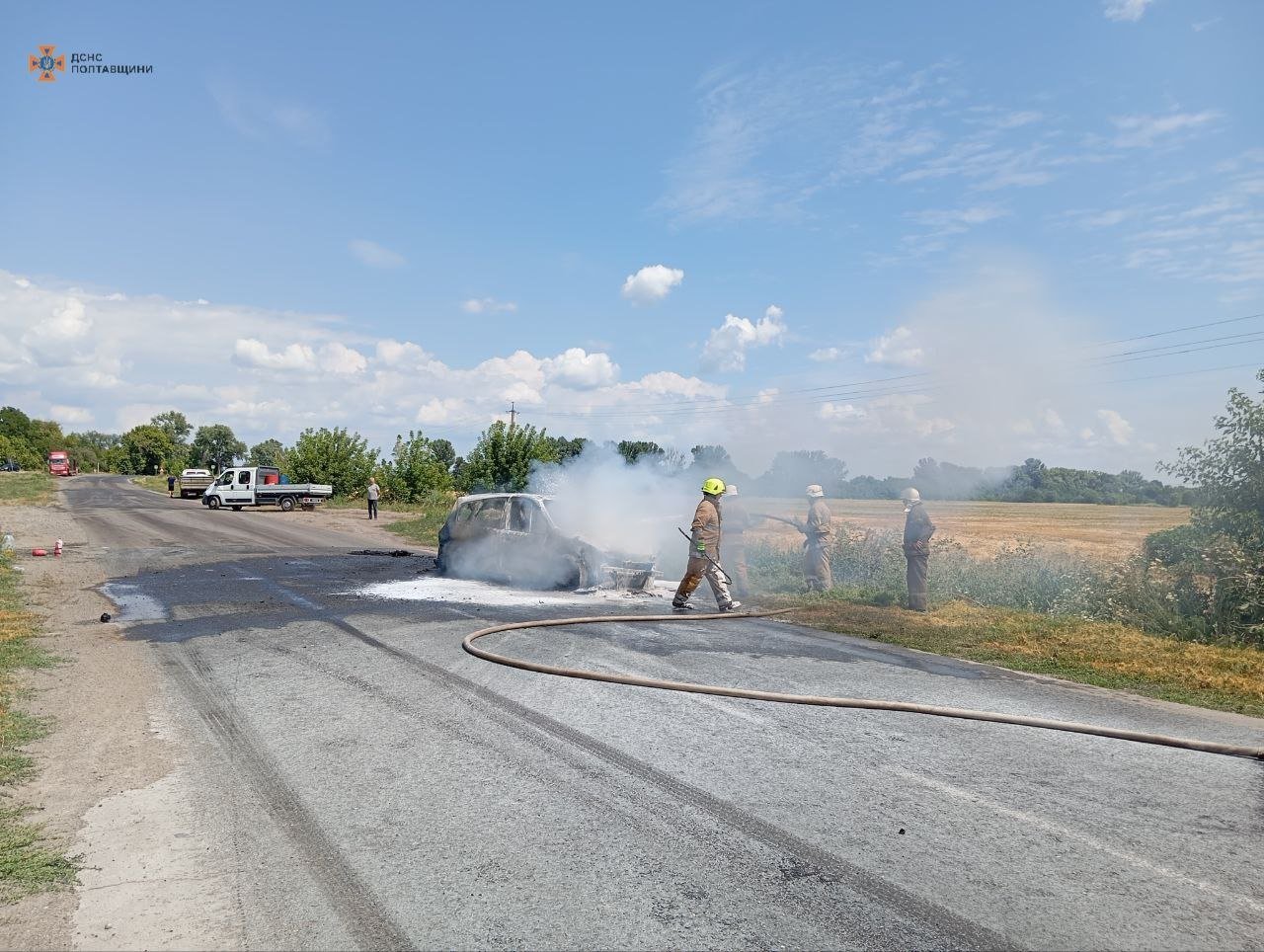 Учора, 22 липня, о 13.05 до Служби порятунку надійшло повідомлення про пожежу на легковому автомобілі в селі Степове Глобинської територіальної громади.