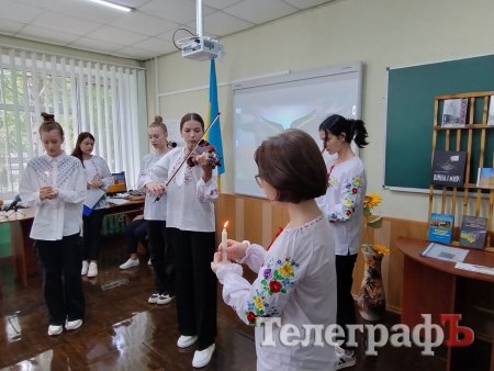 Розпочався урок пам’яті із гімну України та хвилини мовчання за полеглими випускниками гімназії. А їх уже троє — Станіслав Прохоров, Роман Медведєв та Ян Гончаров.