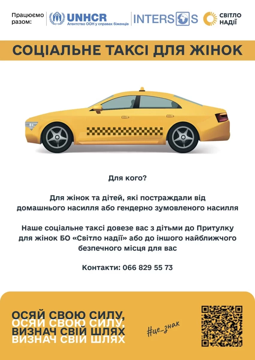 Таке таксі безкоштовно довезе постраждалих до притулку організації або до іншого найближчого безпечного місця за їх вибором. Працює соціальне таксі по всій області і є швидким та безпечним транспортом для жінок та дітей, які потребують допомоги.