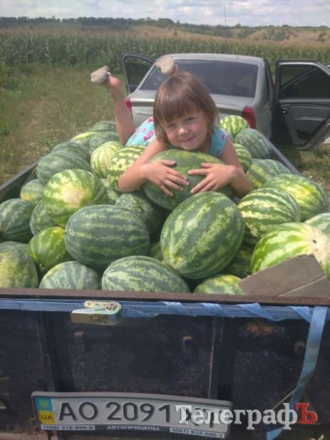 Учасник №1 — Юрій Чубаров та донька Поліна, які виростили дивовижний врожай кавунів на власній ділянці.