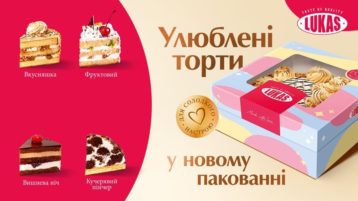 Ці та безліч інших дитячих спогадів спливуть у пам’яті, як тільки Ви спробуєте тортики від компанії «Lukas»: Наполеон, Спартак, Бджілка та Медовий в новому зручному форматі.
