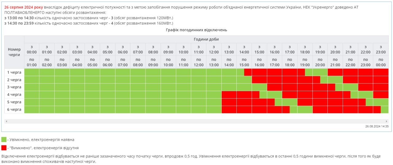 У Кременчуці та на Полтавщині збільшили тривалість погодинного відключення світла. Відповідна інформація розміщена на сайті «Полтаваобленерго».